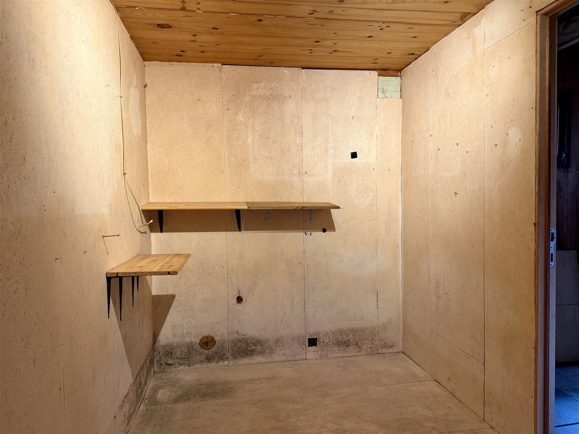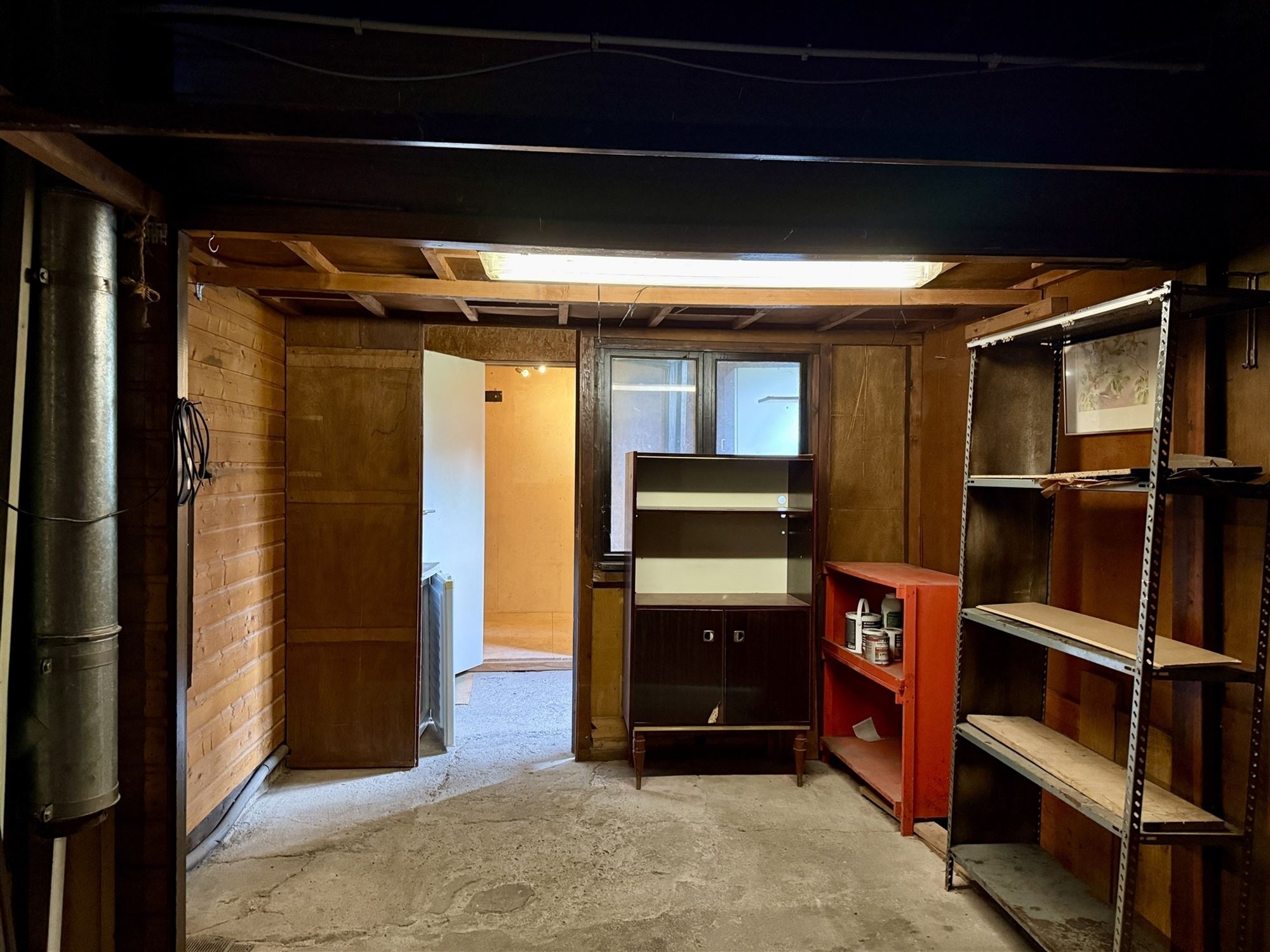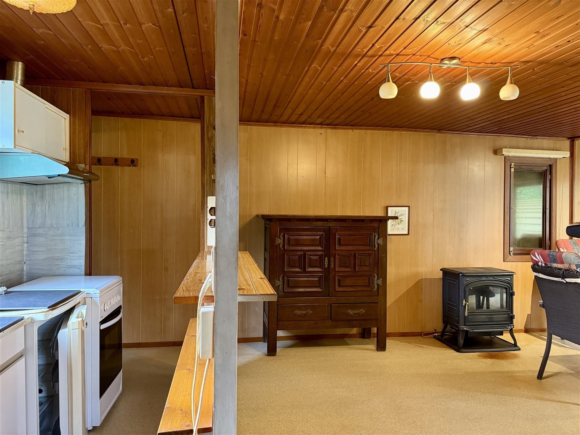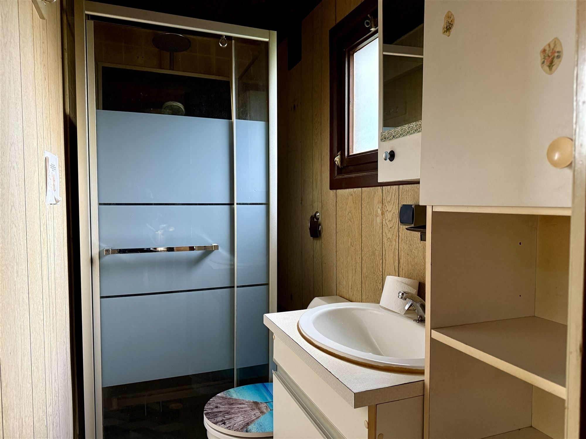 REZ: séjour avec poêle à mazout, ouvert sur une cuisine semi-équipée, 2 chambres, salle de douche (douche récente, WC et évier), débarras/arrière cuisine, pièce à aménager (possible nouvelle salle de douche; les arrivées d'eau sont déjà prévues), espace atelier/rangement, garage, terrasse couverte.