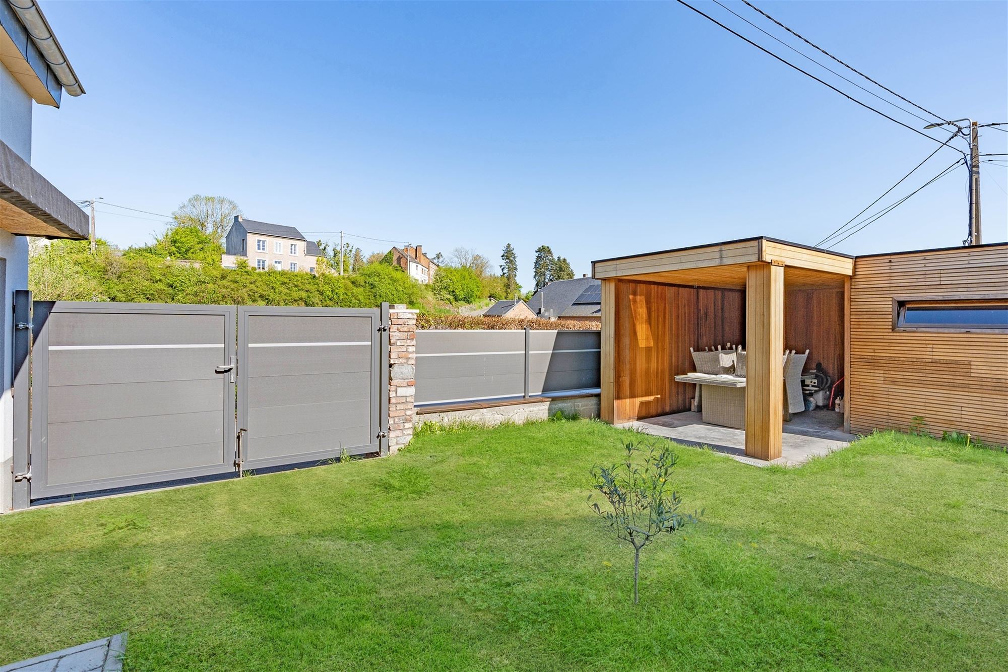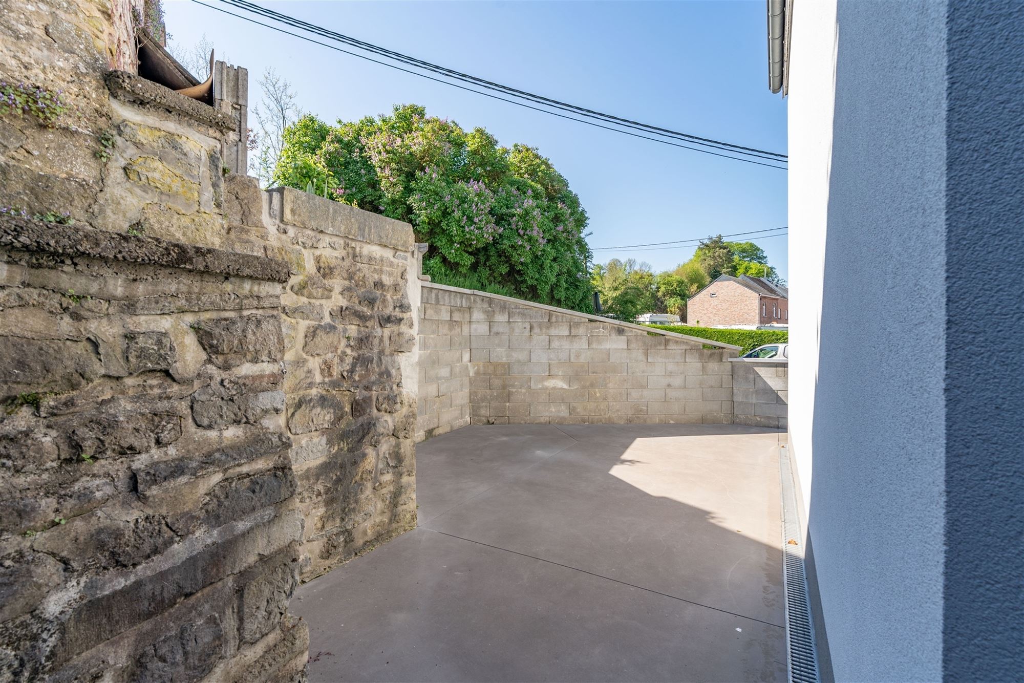 - terrasse à côté du garage, seconde terrasse couverte attenante à un abri (initialement prévu pour accueillir un jacuzzi) ;
