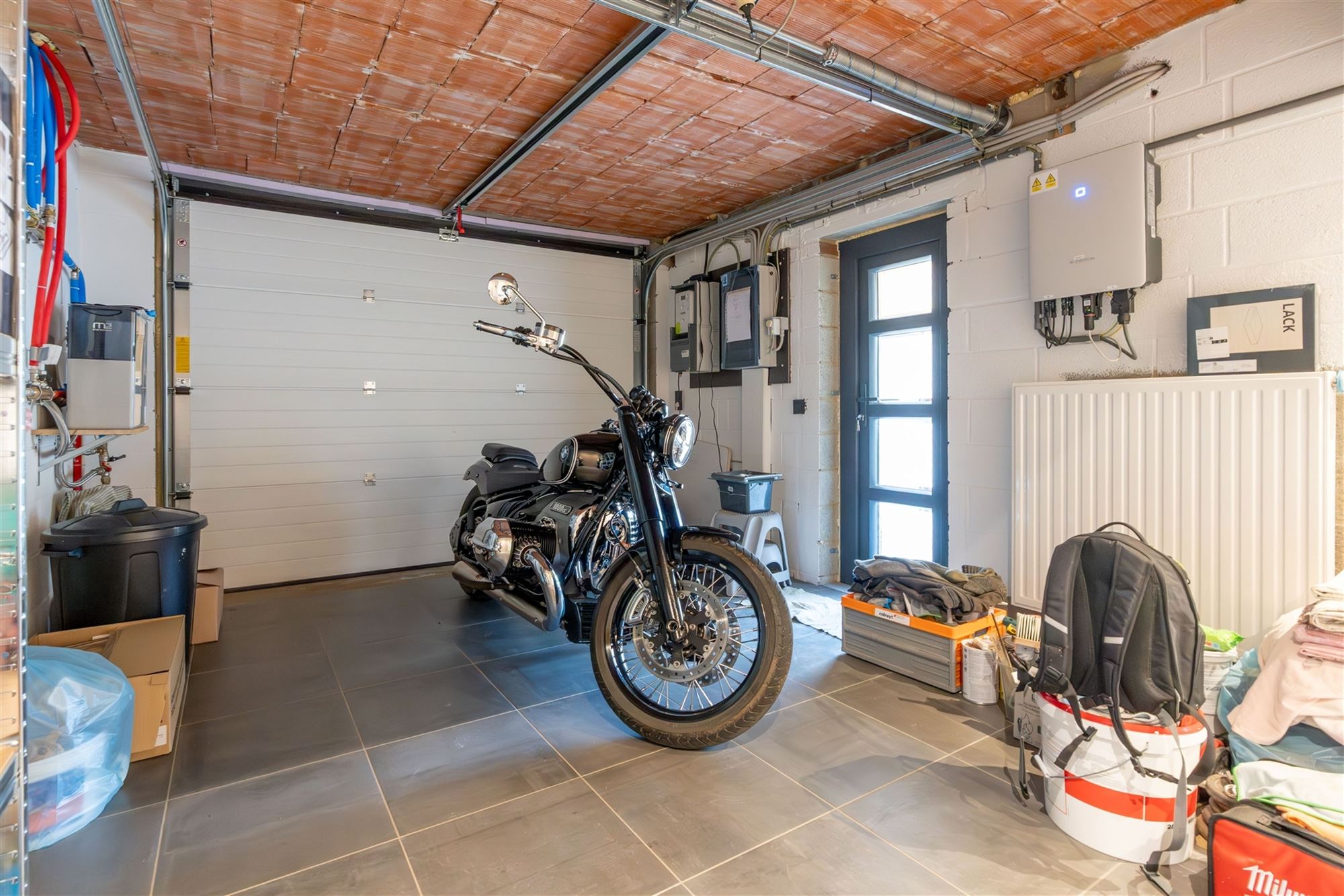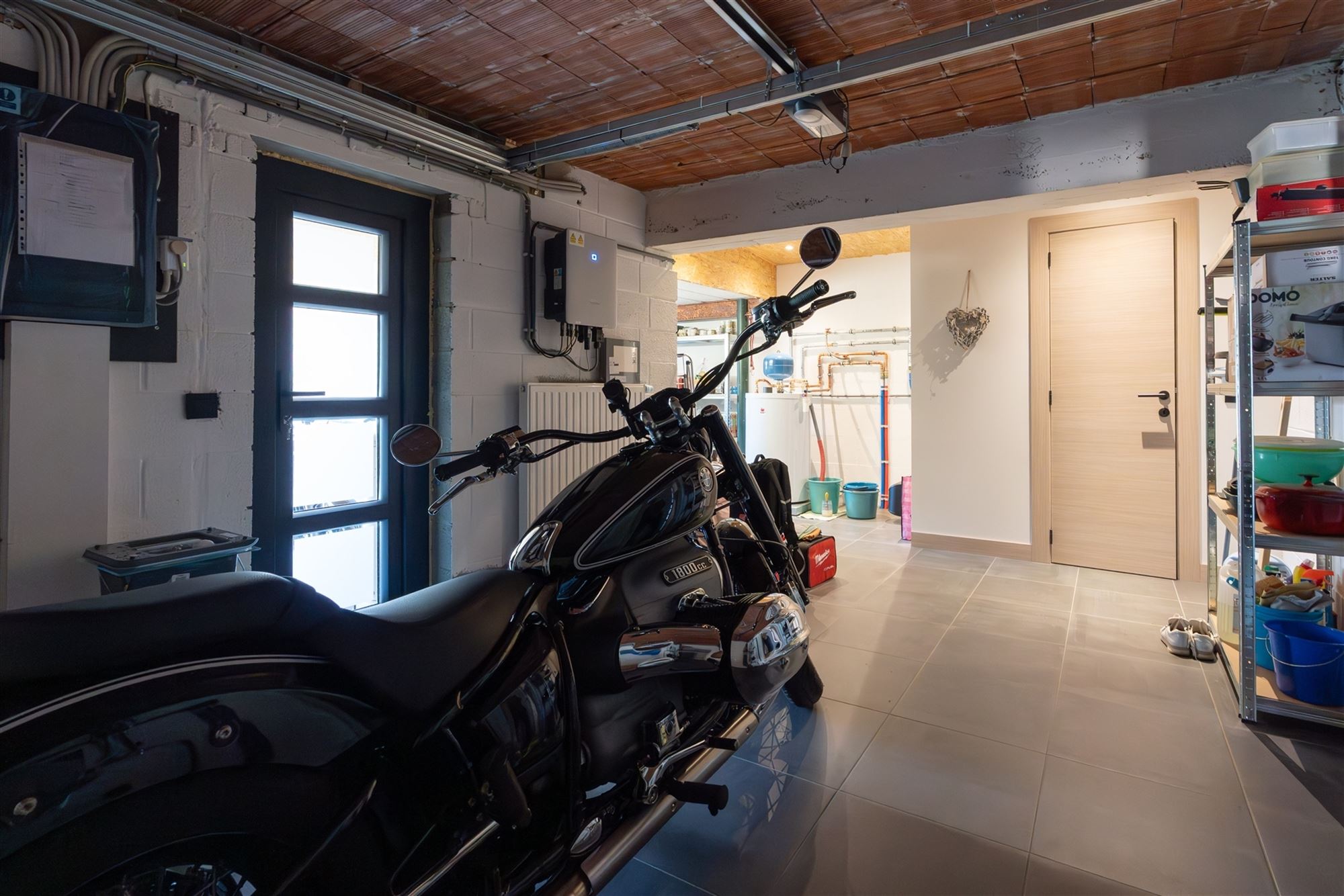 Au rez-de-chaussée, vous découvrirez des espaces de vie accueillants et bien agencés, dont un salon cosy, une cuisine entièrement équipée ainsi qu'un garage attenant bien pratique, équipé d'une porte sectionnelle motorisée et prolongé par un espace atelier/chaufferie.