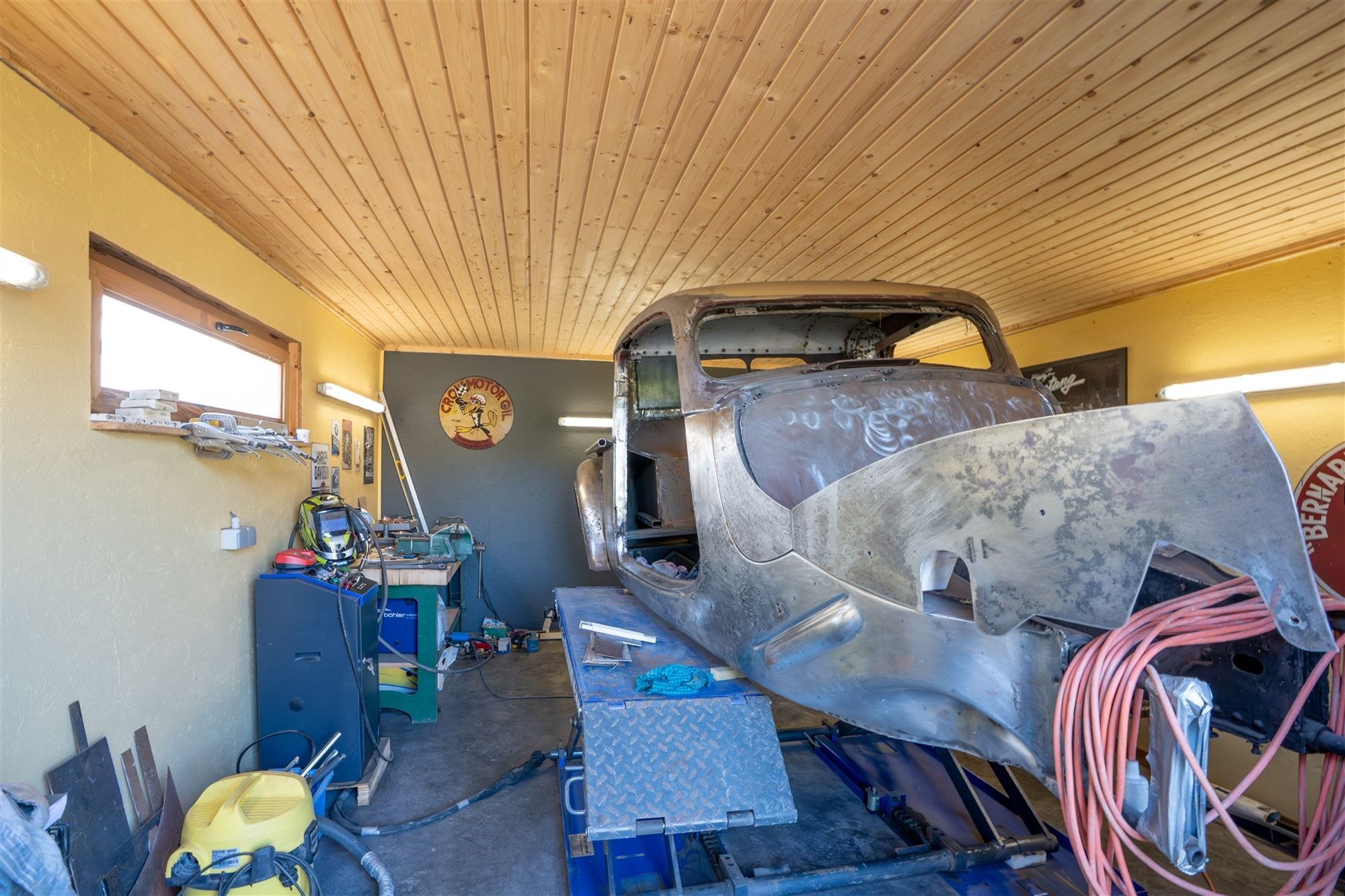 - atelier indépendant d'environ 20 m², béton lissé au sol, murs isolés de 6 cm de styrodur ;