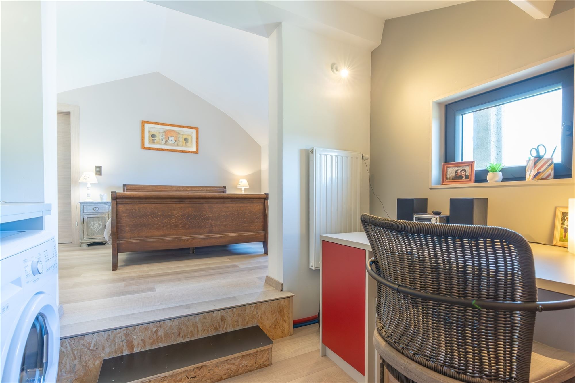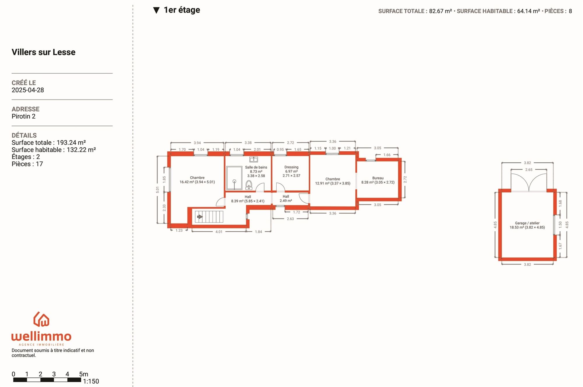 L'étage n'est pas en reste avec deux belles chambres (16,4 m² et 12,9 m²), un spacieux dressing, un bureau/buanderie polyvalent et une salle de bain moderne équipée d'une confortable douche italienne.