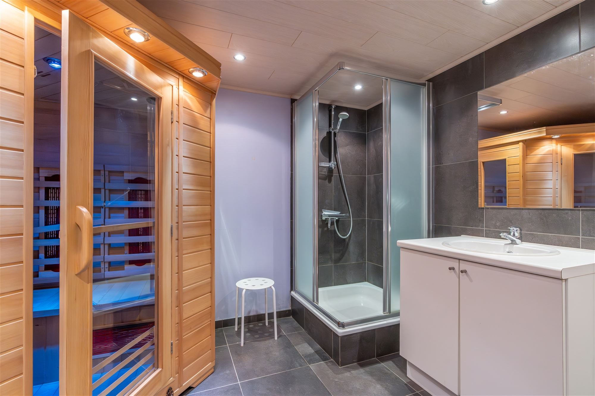 Un espace bien-être, véritable atout, équipé d’un sauna moderne et d’une douche. De vastes caves et rangements,