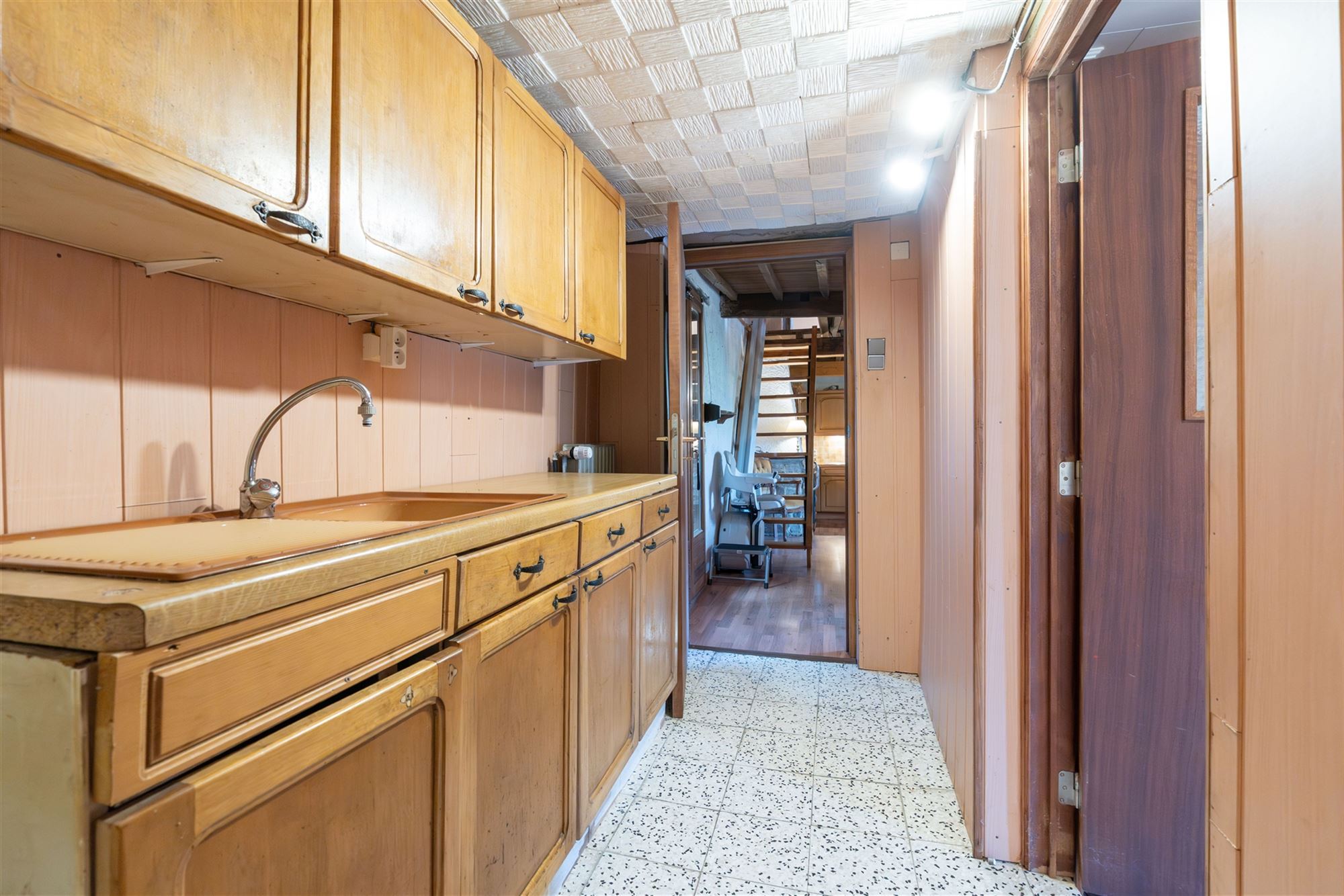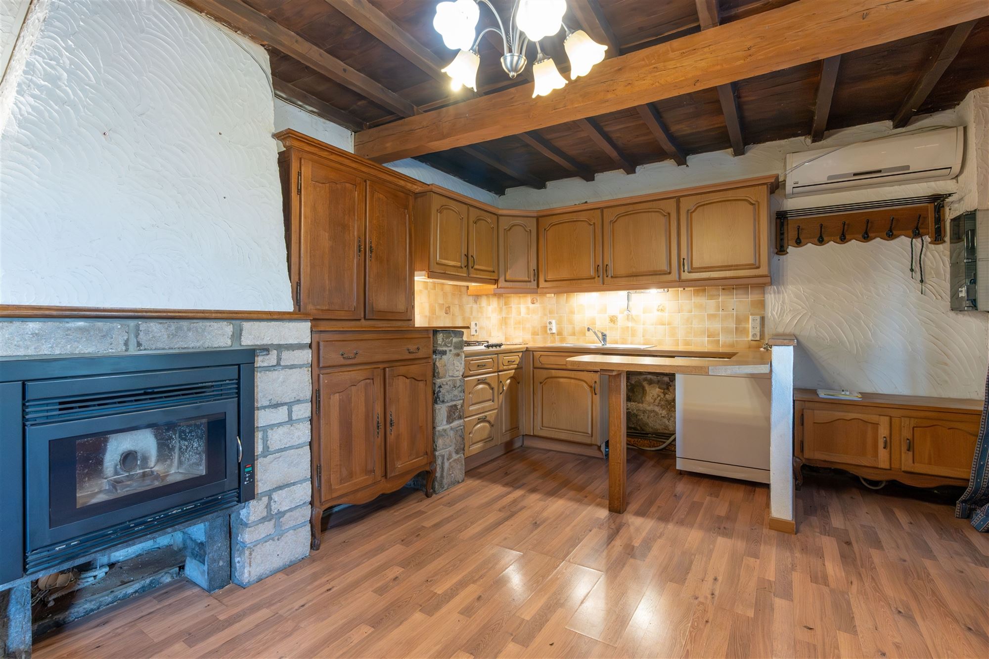 REZ: terrasse couverte/véranda, salle de séjour (salon, salle à manger, cuisine ouverte semi-équipée (lave-vaisselle, évier inox, taque au gaz, hotte), arrière-cuisine/buanderie, WC séparé. Un espace de rangement sous la terrasse couverte de l'étage, une cour couverte.