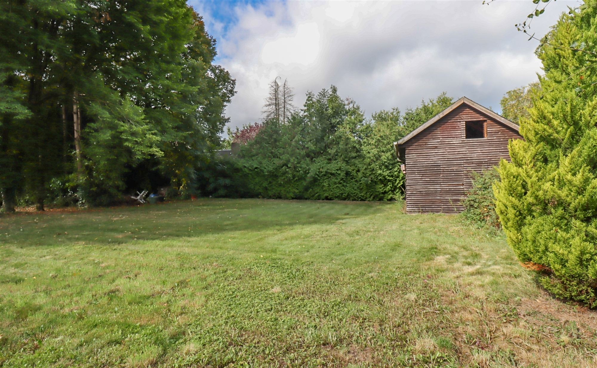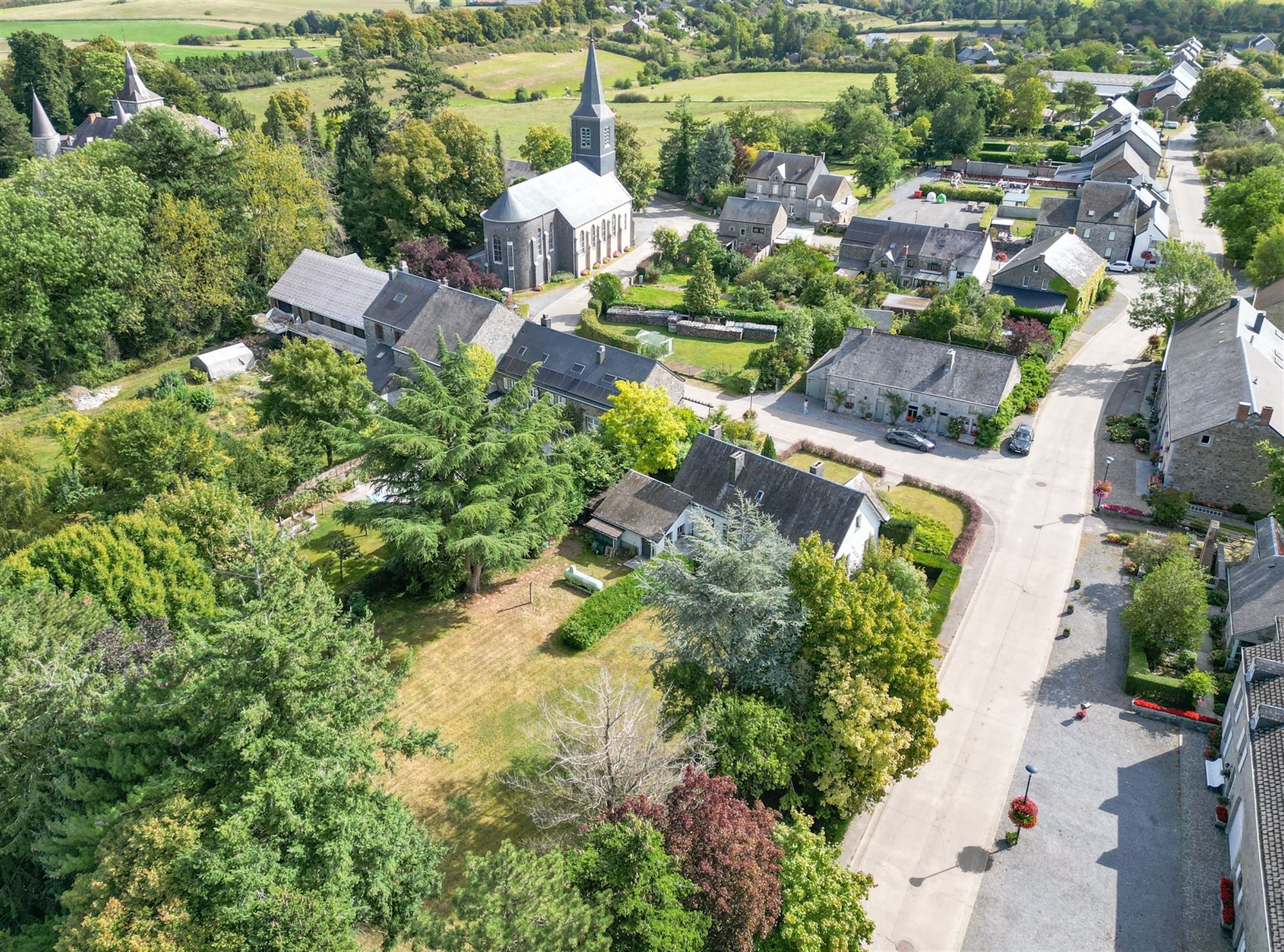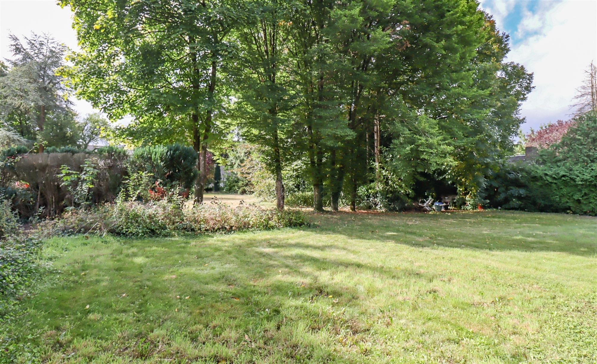 La villa, construite au milieu des années 1960 sur une parcelle de près de 30 ares, bénéficie d’un emplacement privilégié le long de la rue de l’Église. Le terrain, aménagé en parc et agrémenté de magnifiques spécimens de feuillus et de conifères, se situe entièrement en zone d’habitat à caractère rural, offrant ainsi la possibilité d’un projet supplémentaire sous réserve des autorisations nécessaires.