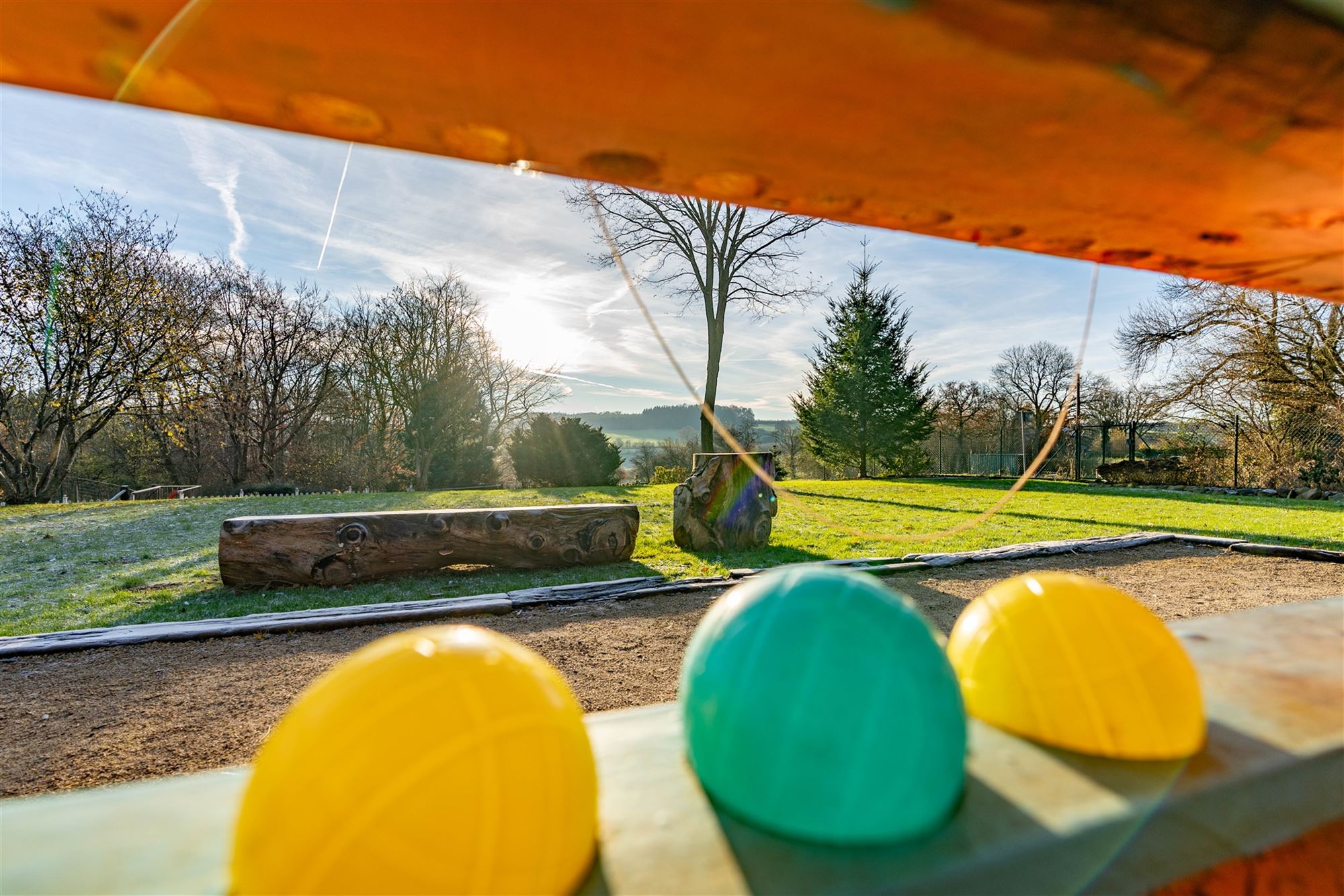 Le domaine est un véritable lieu de ressourcement. Le jardin aménagé avec soin, invite à la détente, à des jeux en extérieur ou des moments de calme. Un espace dédié à la pétanque permet aux hôtes de profiter des belles journées ensoleillées. La vue exceptionnelle et dégagée sur la campagne alentours crée une ambiance chaleureuse et apaisante.