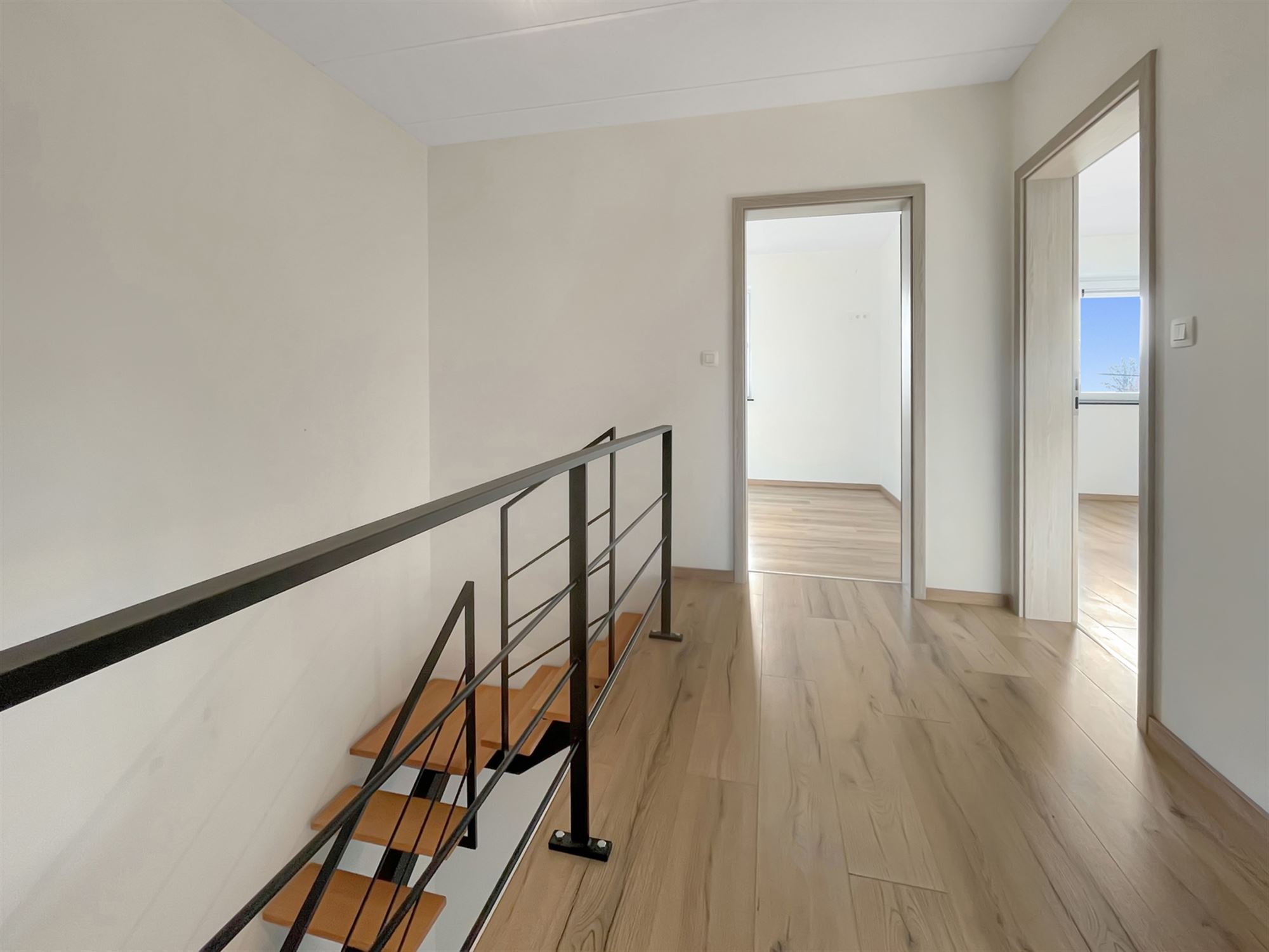 BEGANE GROND: ruime'inkomhal met'vestiaire die leidt naar'trappenhuis, aparte WC met handwasser en grote woonkamer met'volledig uitgeruste keuken (oven/koelkast/vitro-kamiek/vaatwasser/kookplaat) en'grote zithoek met dubbele beglazing. De keuken heeft directe toegang tot het terras en communiceert met een bijkeuken/bijkeuken die ook een eigen toegang tot het terras heeft.# NewLine#REZ+1een hal die leidt naar 2 grote slaapkamers, een kleinere kamer die gebruikt kan worden als kleedkamer, studeerkamer of 3e slaapkamer en'een badkamer met bad, grote Italiaanse douche, dubbele wastafel en WC. NewLine#KAMERS: onafgewerkte zolder. NewLine#BUITEN: op', 3tot 4 parkeerplaatsen en op'een terras en aantrekkelijk gazon.#NewLine#INFOS+: