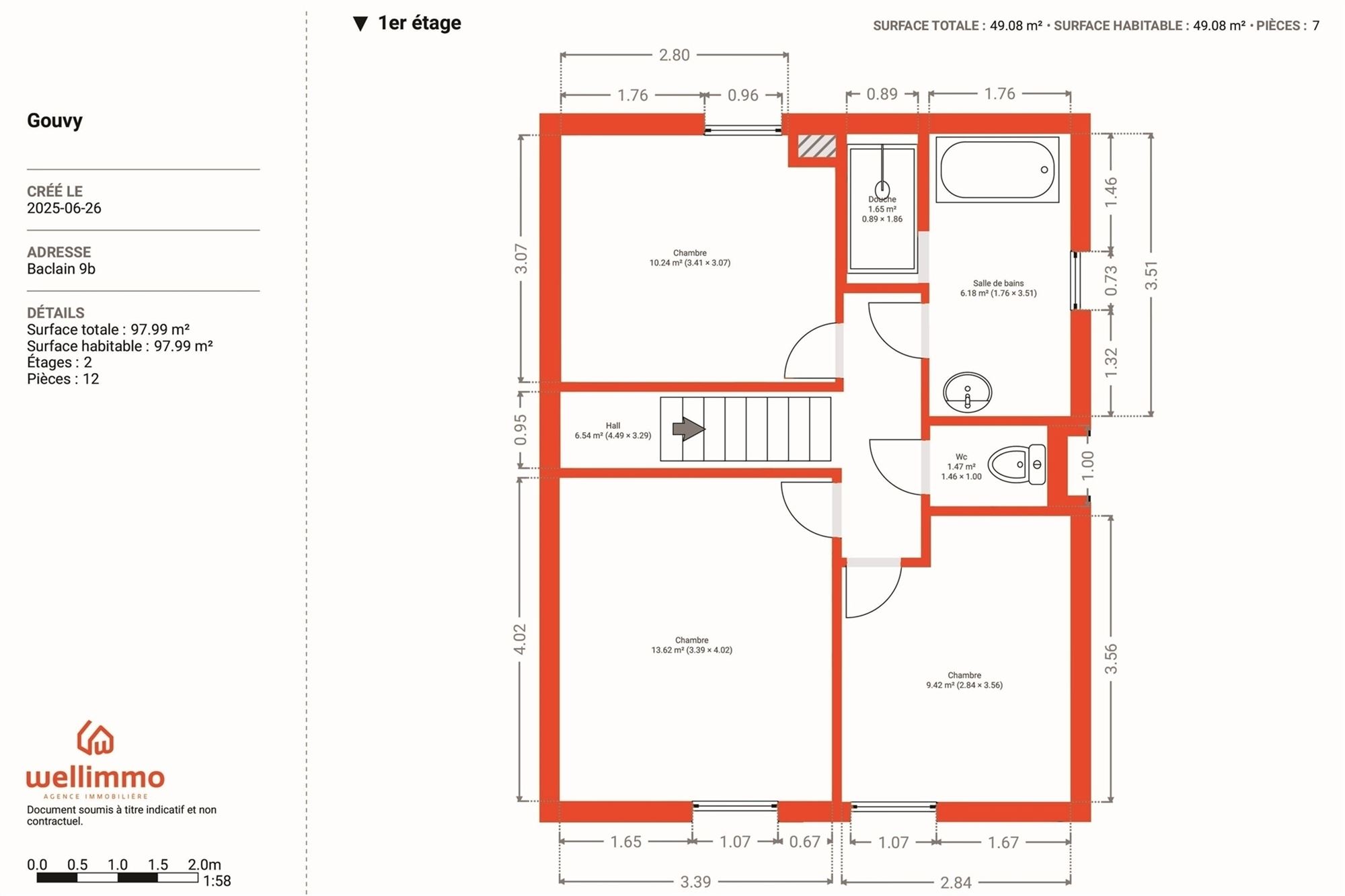 GLV + 1: Nachthal met toegang tot 3 slaapkamers (10,24 m², 13,62 m² en 9,42 m²), afzonderlijke WC en badkamer (met inloopdouche, ligbad en wastafel).