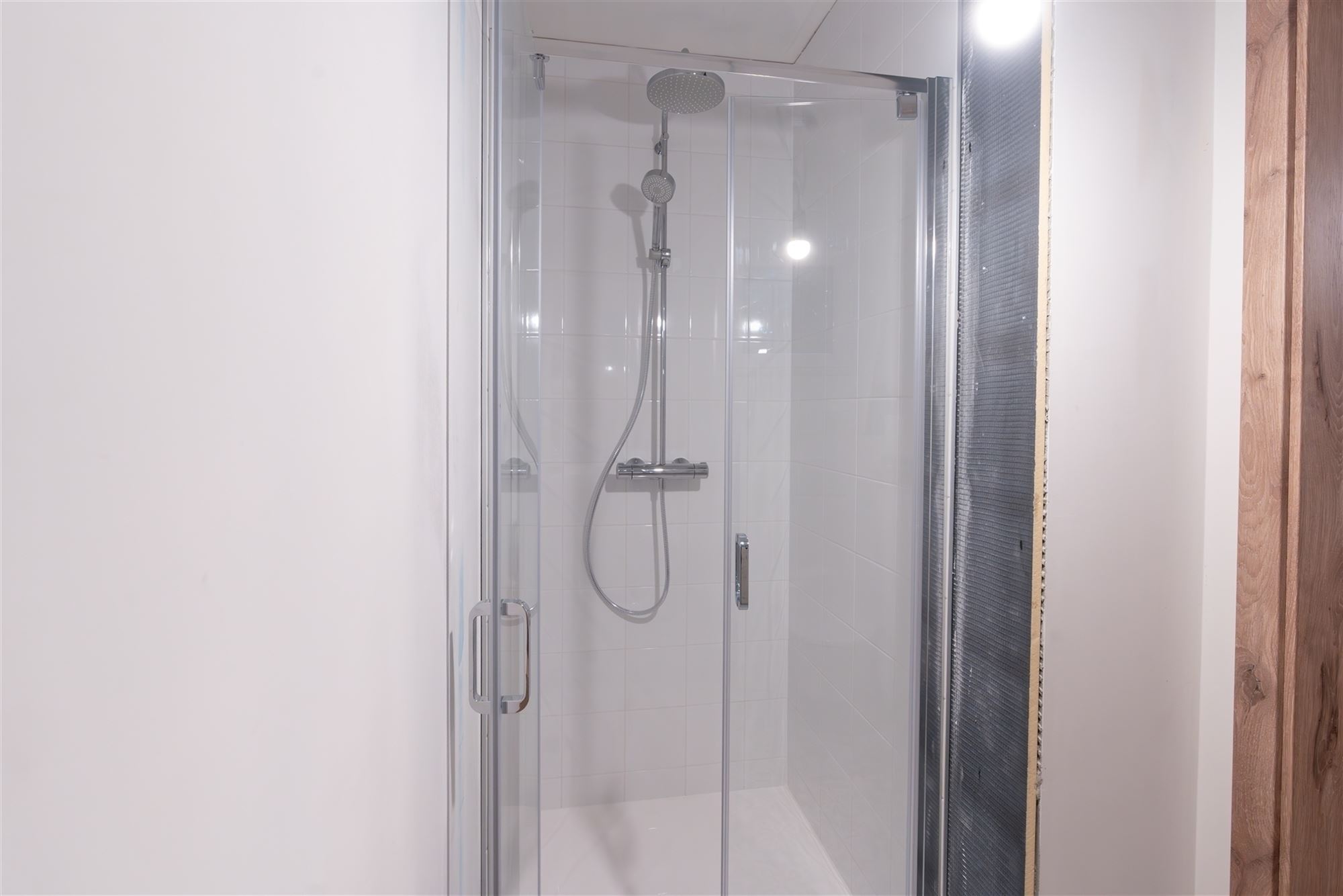 GLV: een inkomhal, badkamer (met douche, wastafel en WC), woonkamer met open keuken (bemeubeld, voorzien van afzuigkap, elektrische kookplaat en spoelbak; overige elektrische apparatuur dient te worden voorzien), wasruimte.
