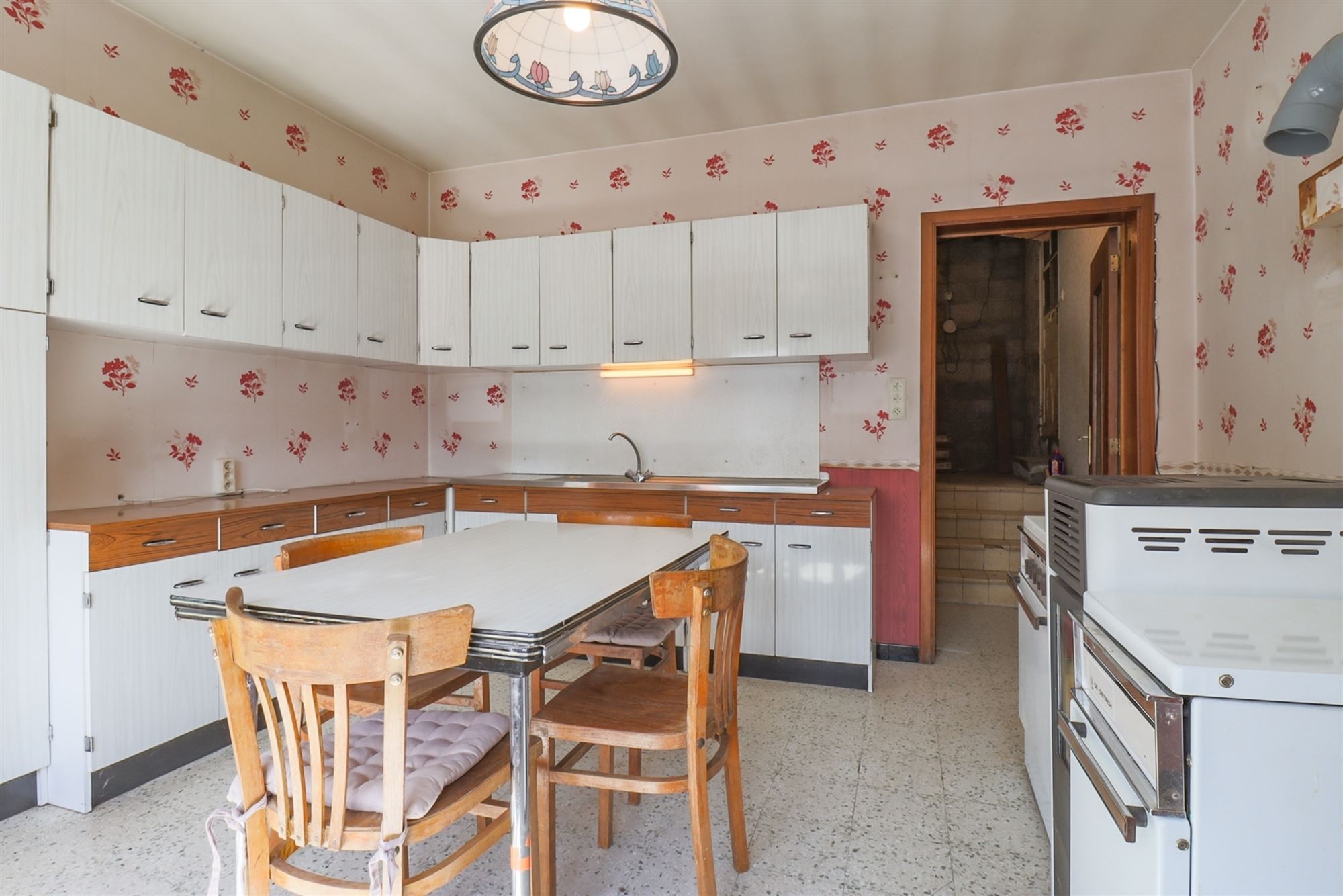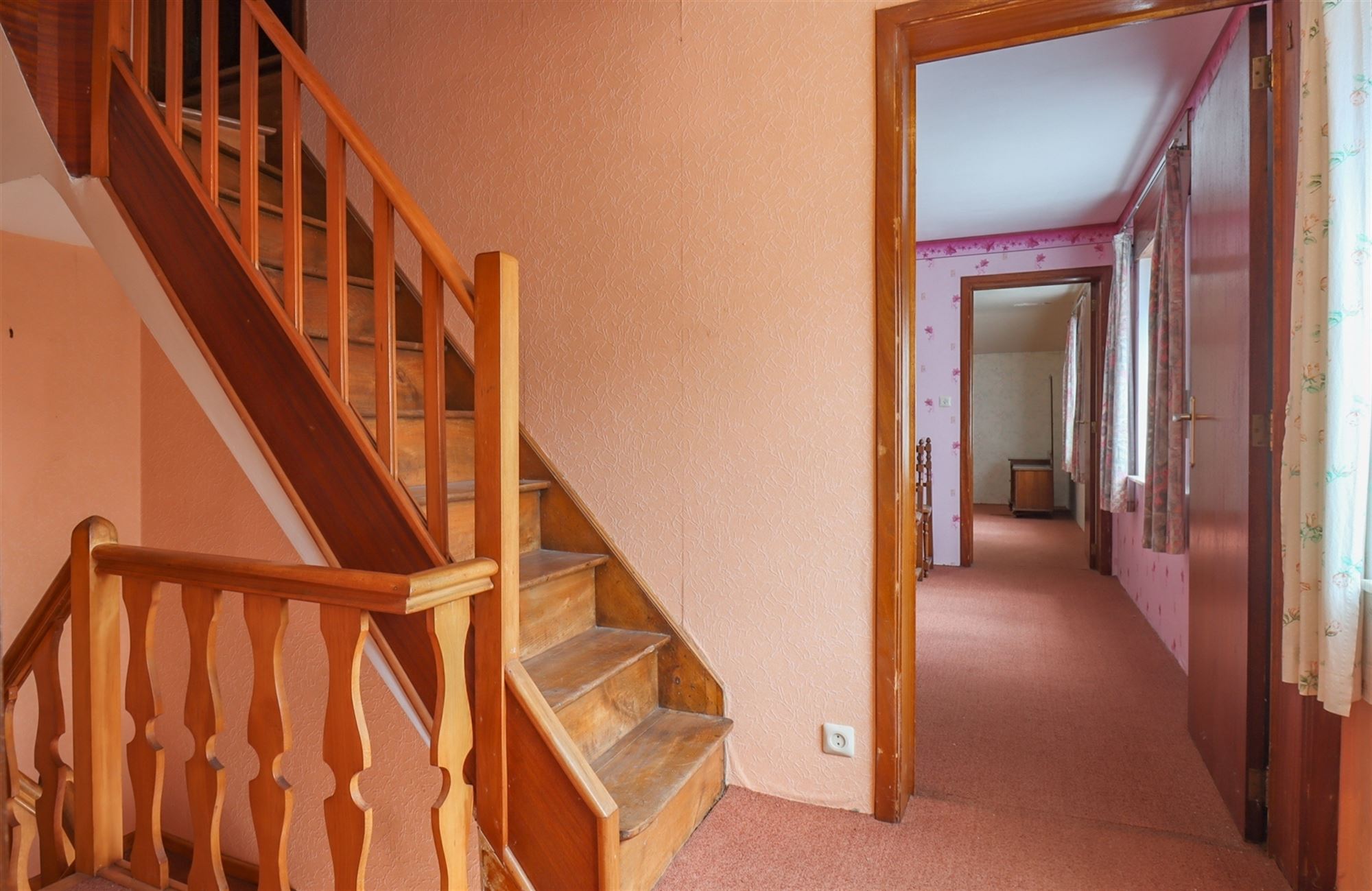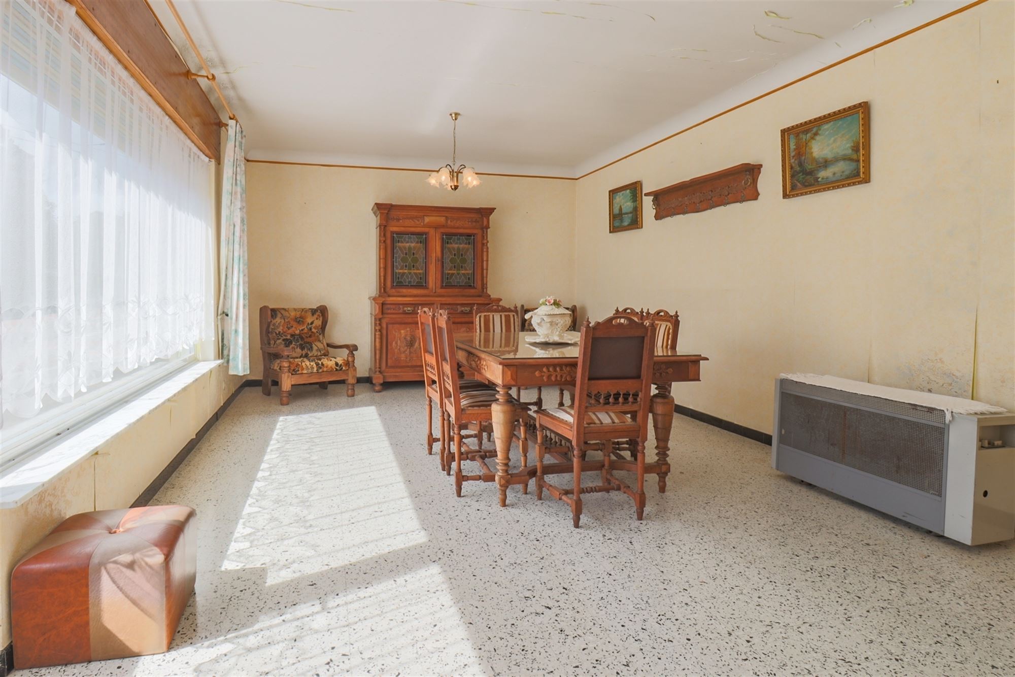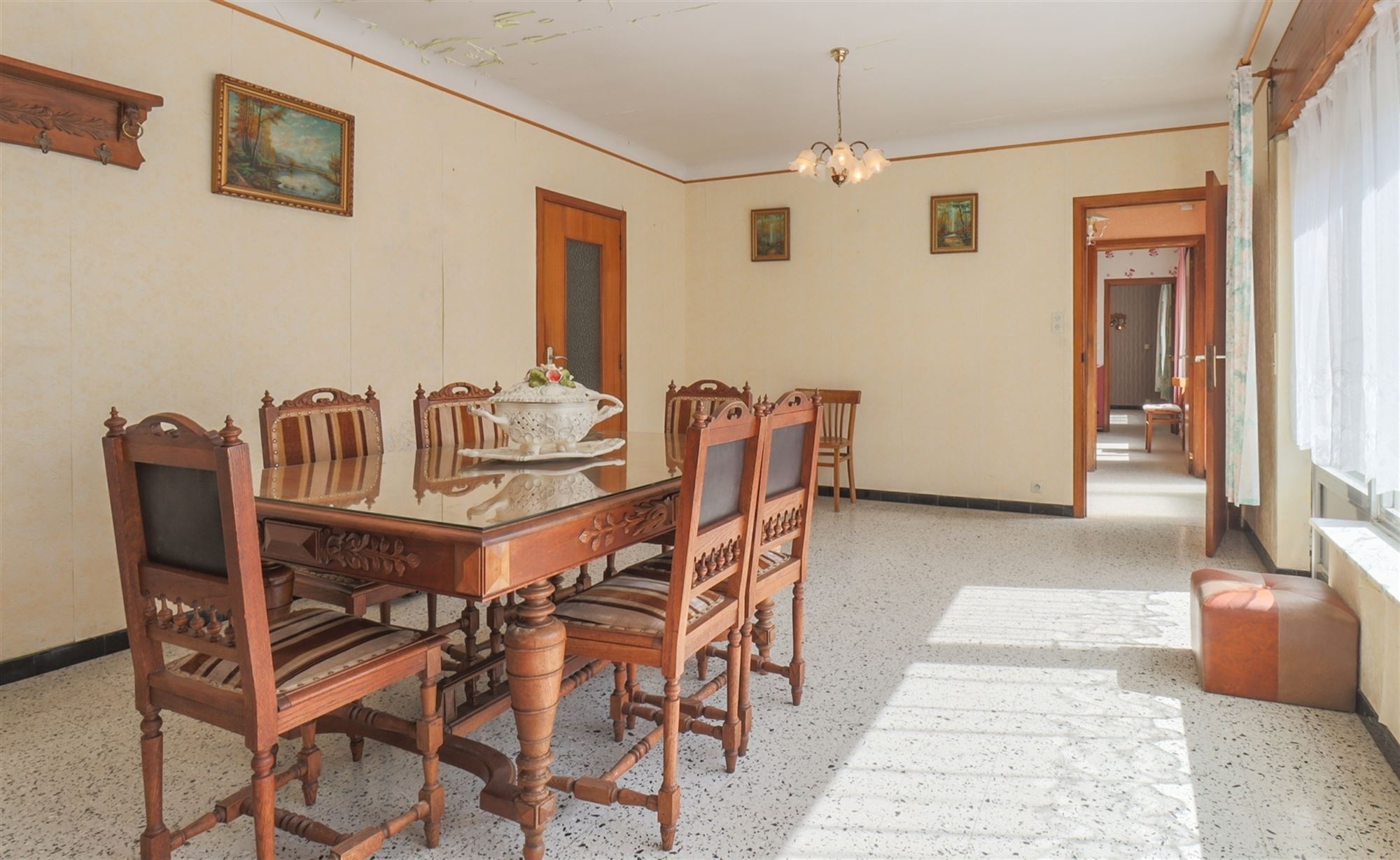 GLV: hal naar de ruime eetkamer (28 m², vroegere winkel), uit te rusten keuken, salon, te vernieuwen badkamer (bad, wastafel) en afzonderlijke wc, schuur, atelier, en vele ruimtes die nog kunnen worden ingericht op ongeveer 210 m² grondoppervlakte.