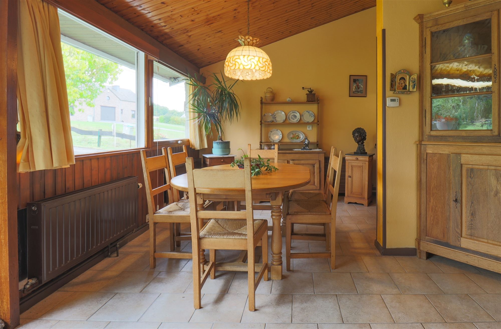 GLV: semi-uitgeruste keuken open naar de woonkamer (kookplaat op gas, afzuigkap, dubbele inox gootsteen, koelkast en vaatwasser zijn niet ingebouwd), woonkamer bestaande uit een eetkamer en een salon voorzien van een hout-/kolencassette en airconditioning; de woonkamer biedt mooie openingen naar het terras en de tuin.GLV+1/2: overloop die toegang geeft tot 2 slaapkamers met ingebouwde kasten en een douchekamer (douche, wastafel, WC),
