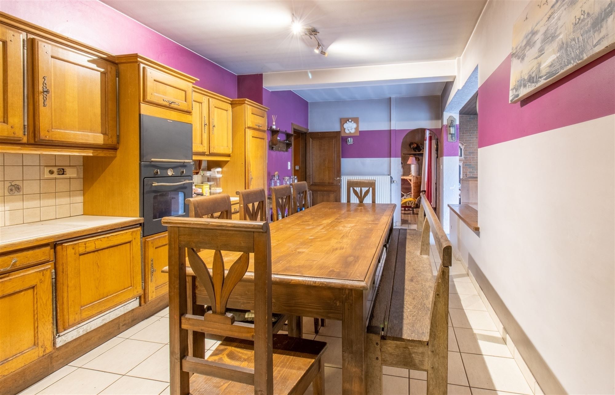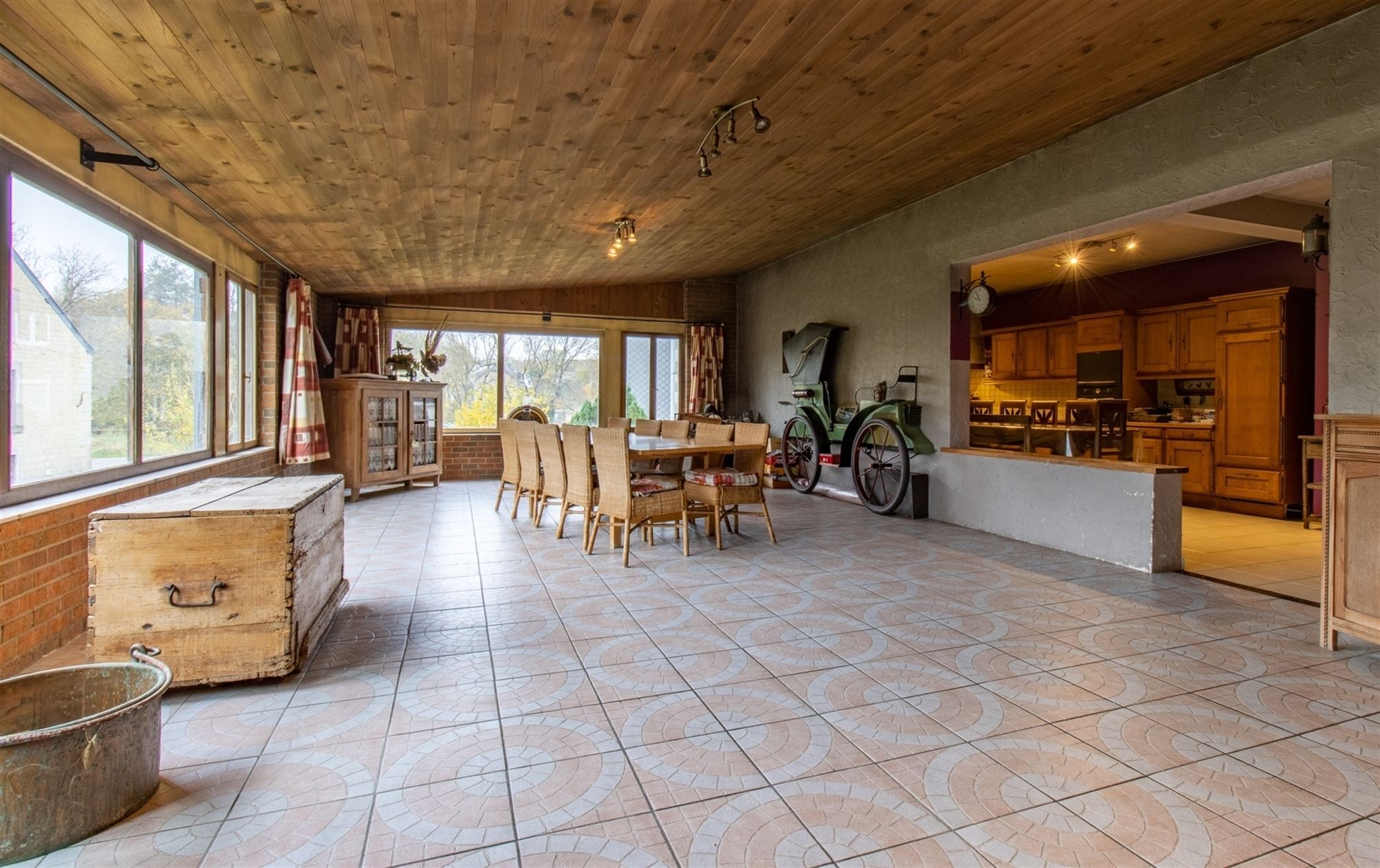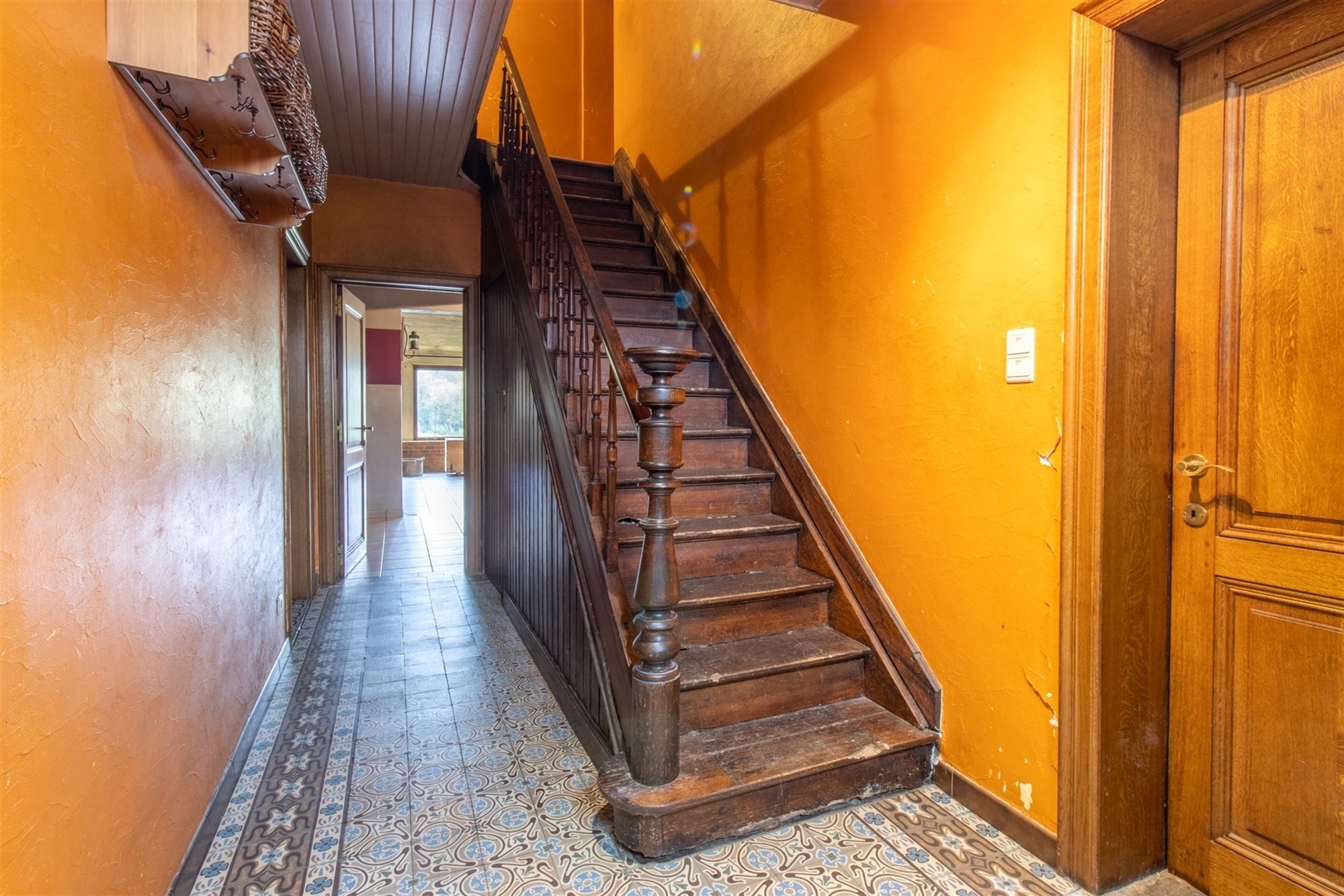 GLV: inkomhal, grote te renoveren badkamer (dubbele wastafel, toilet, ligbad, mogelijkheid om een douche te zetten), ruime ingerichte keuken, salon en gezellige woonkamer, grote aanbouw in gebruik als eetkamer met mooie openingen naar achteren (bijna 60 m²), grote garage.