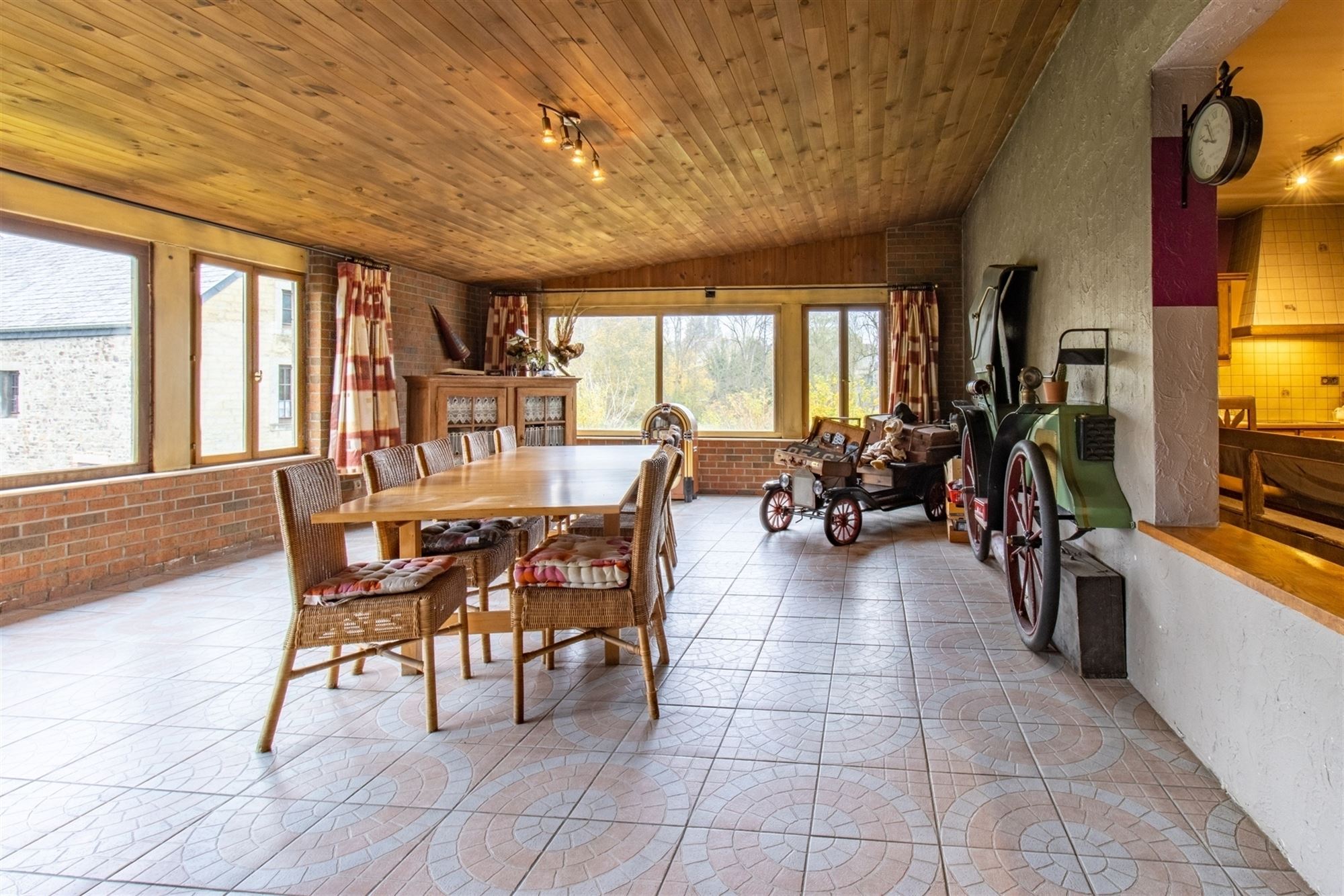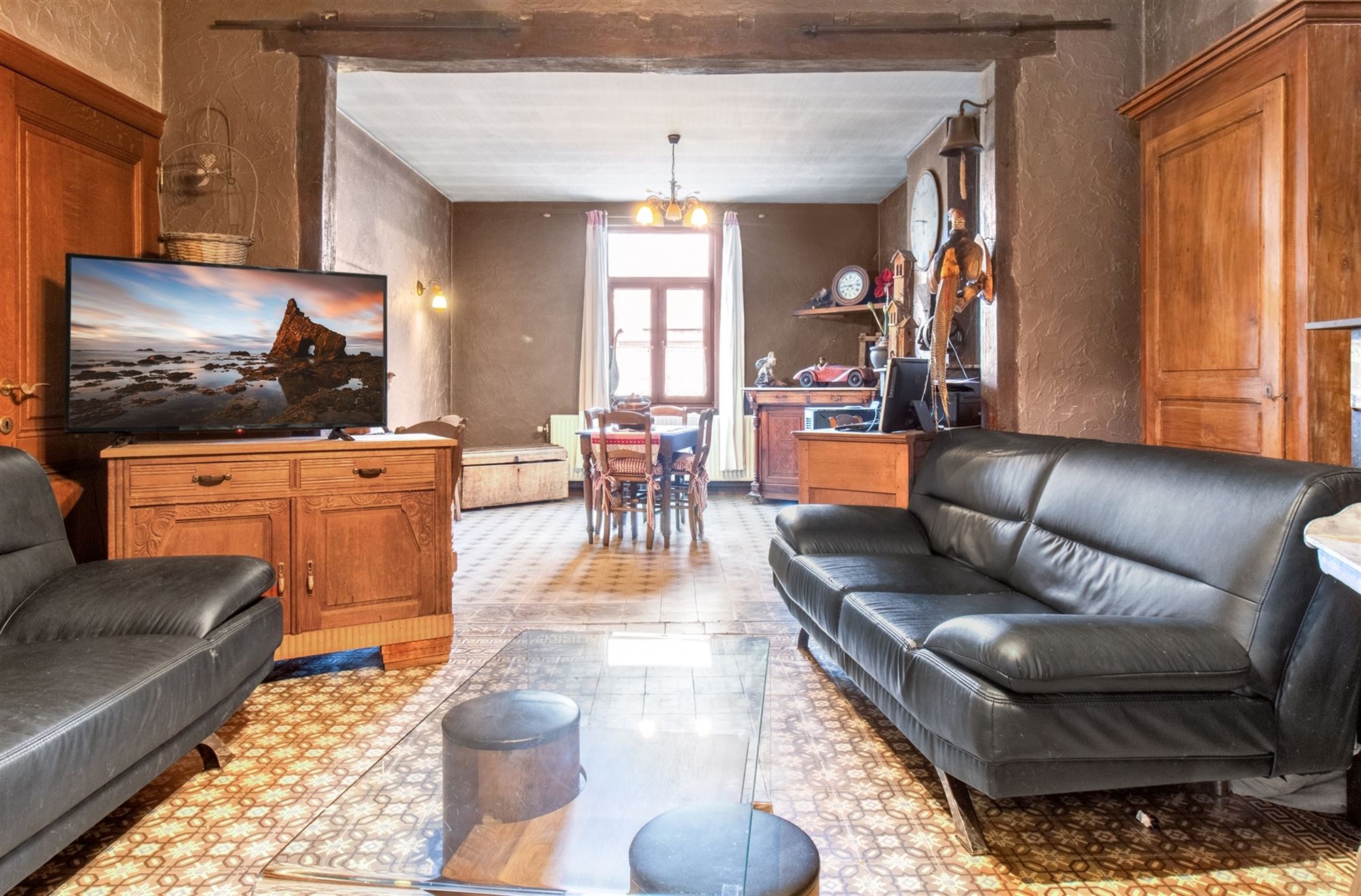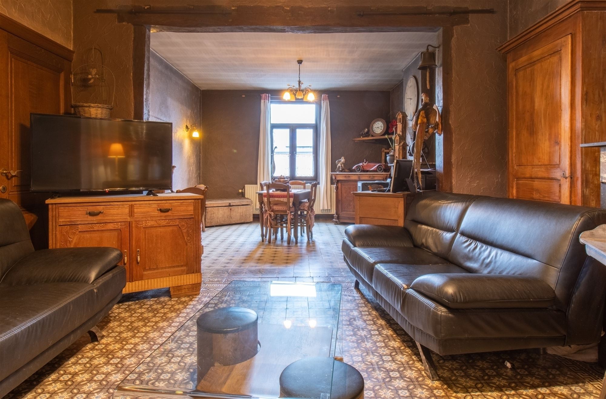 GLV: inkomhal, grote te renoveren badkamer (dubbele wastafel, toilet, ligbad, mogelijkheid om een douche te zetten), ruime ingerichte keuken, salon en gezellige woonkamer, grote aanbouw in gebruik als eetkamer met mooie openingen naar achteren (bijna 60 m²), grote garage.