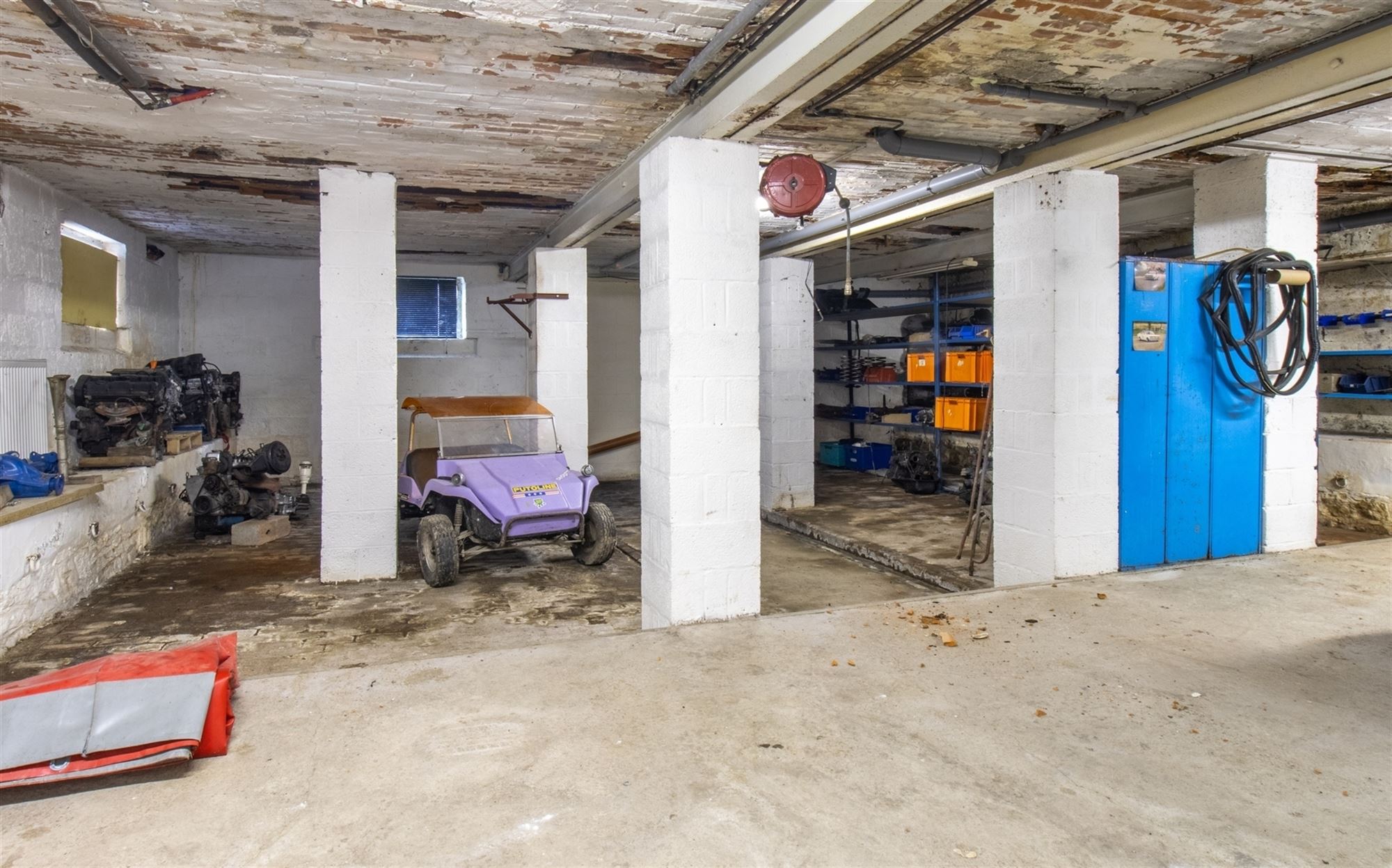 KELDERVERDIEPING: onder het volledige bebouwde volume, bestaande uit een hal naar een stookruimte, een kelder, een tweede garage van meer dan 60 m² en een opslagruimte, werkplaats van bijna 73 m² op de grond!