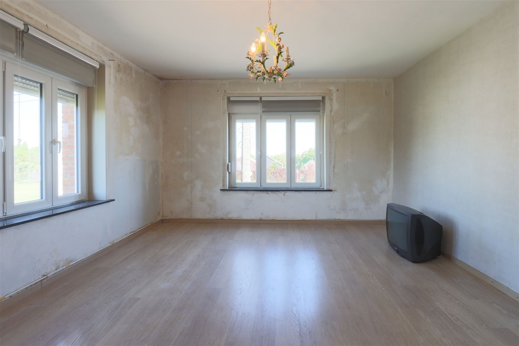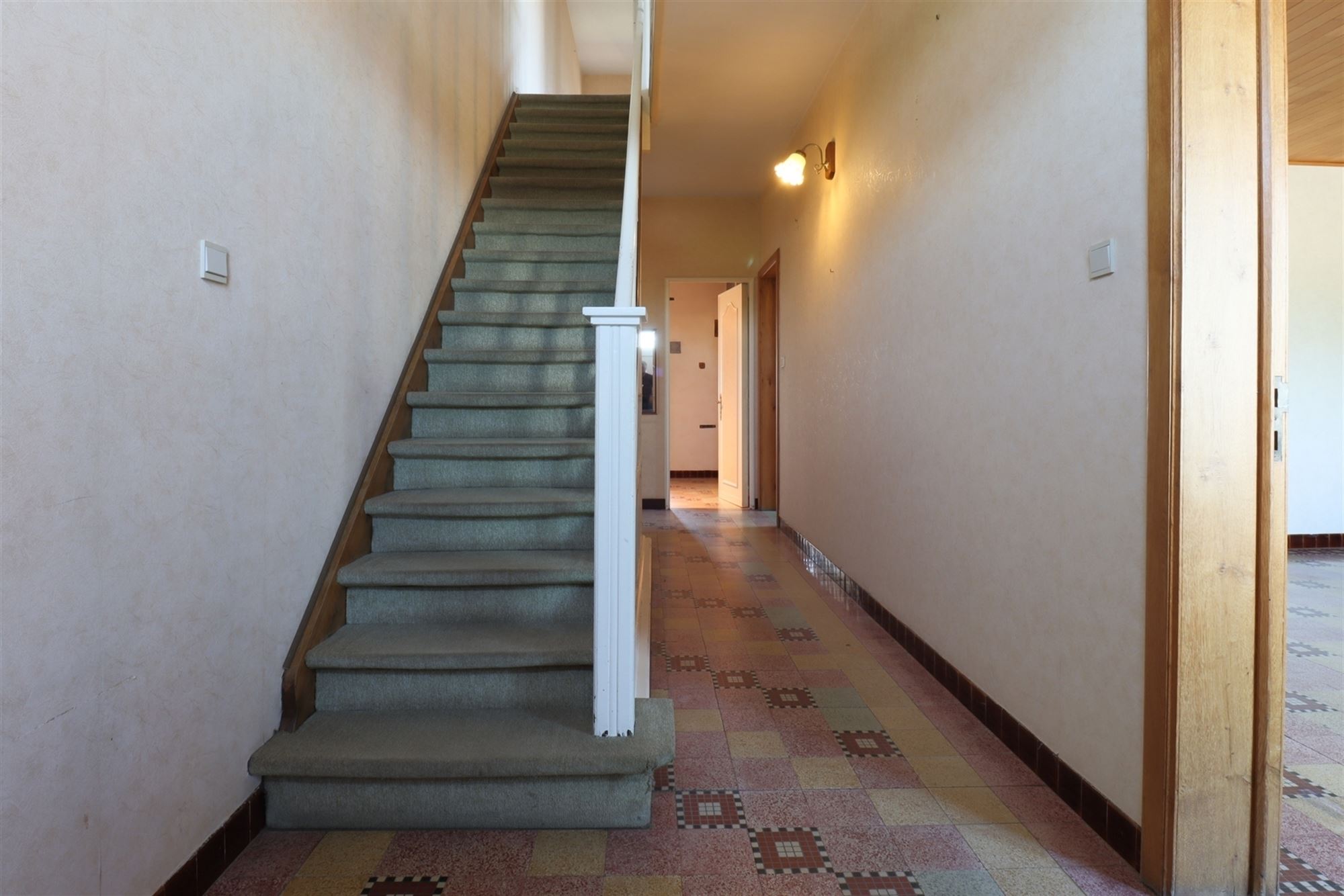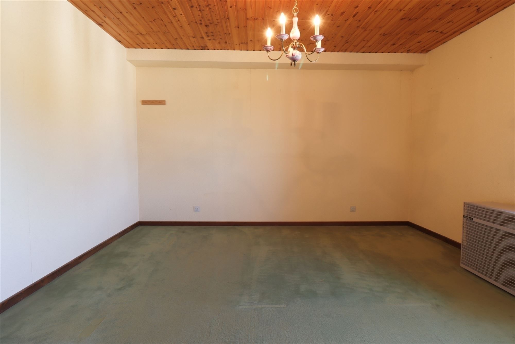GLV: inkomhal met afzonderlijke WC, die leidt naar een woonkamer die verlengd is met een eetkamer en een semi-uitgeruste keuken (1 + ½ gootsteen, oven, afzuigkap, kookplaat).