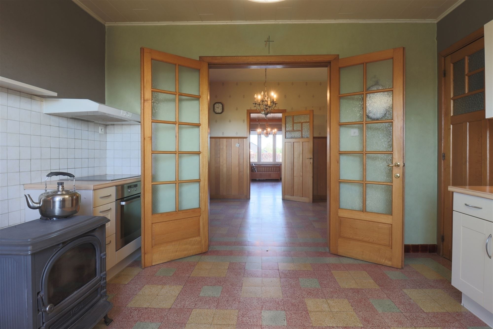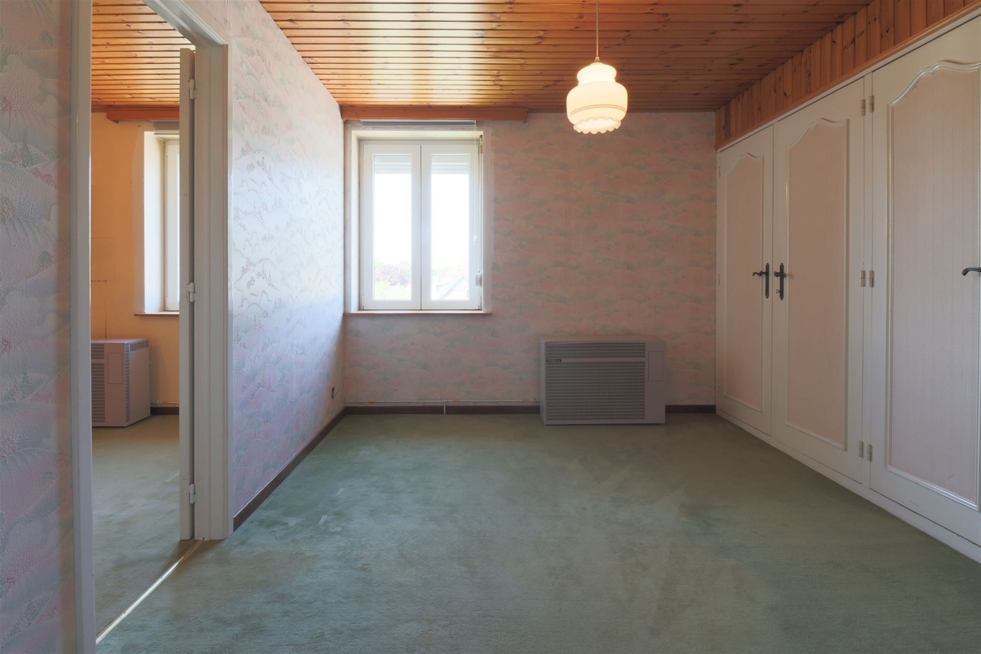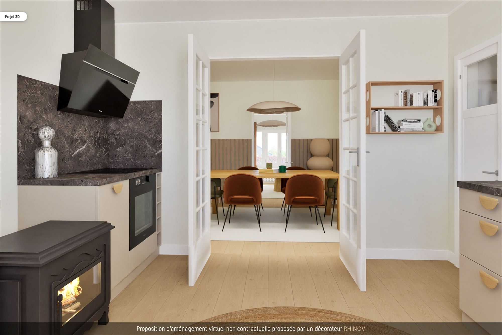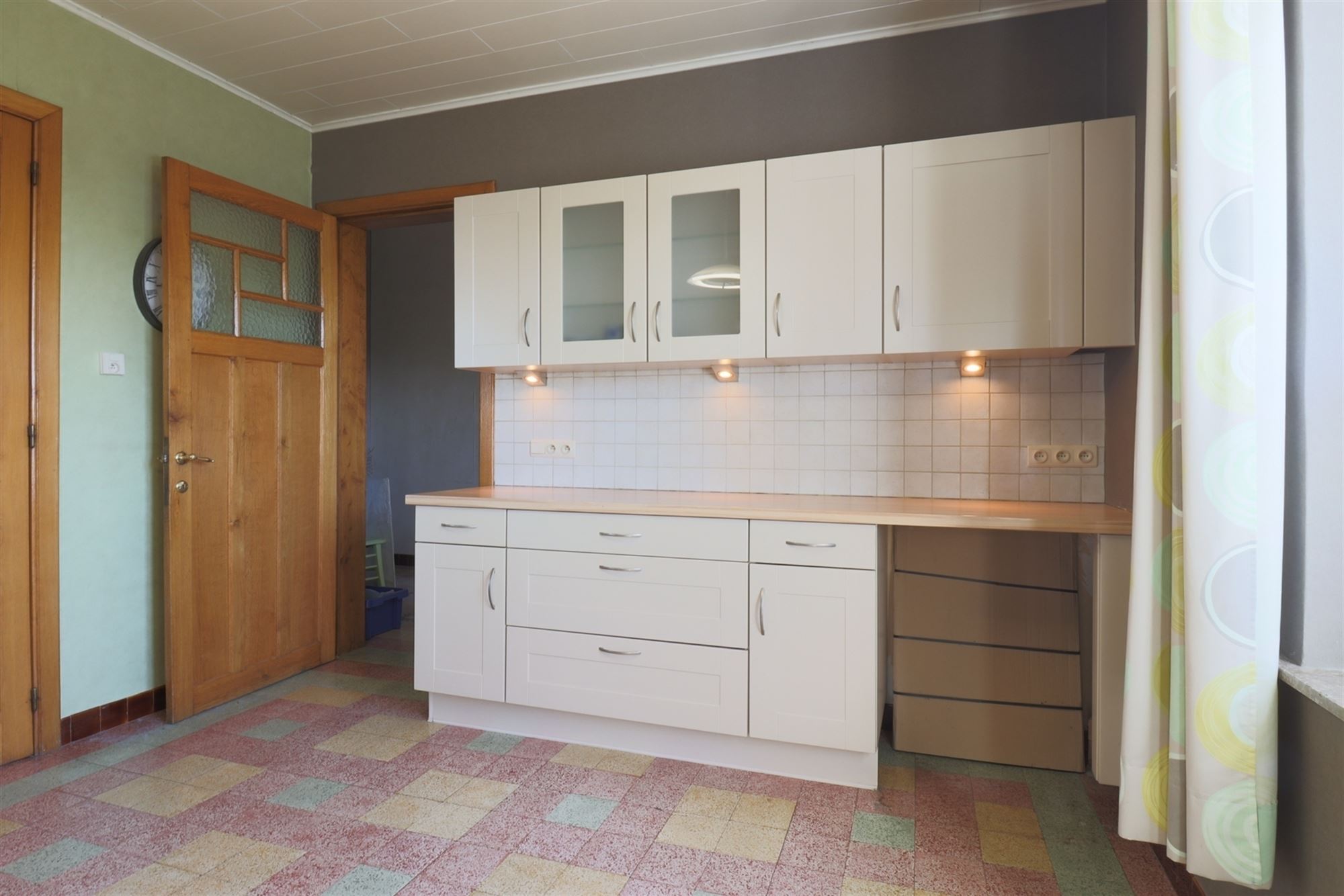 GLV: inkomhal met afzonderlijke WC, die leidt naar een woonkamer die verlengd is met een eetkamer en een semi-uitgeruste keuken (1 + ½ gootsteen, oven, afzuigkap, kookplaat).