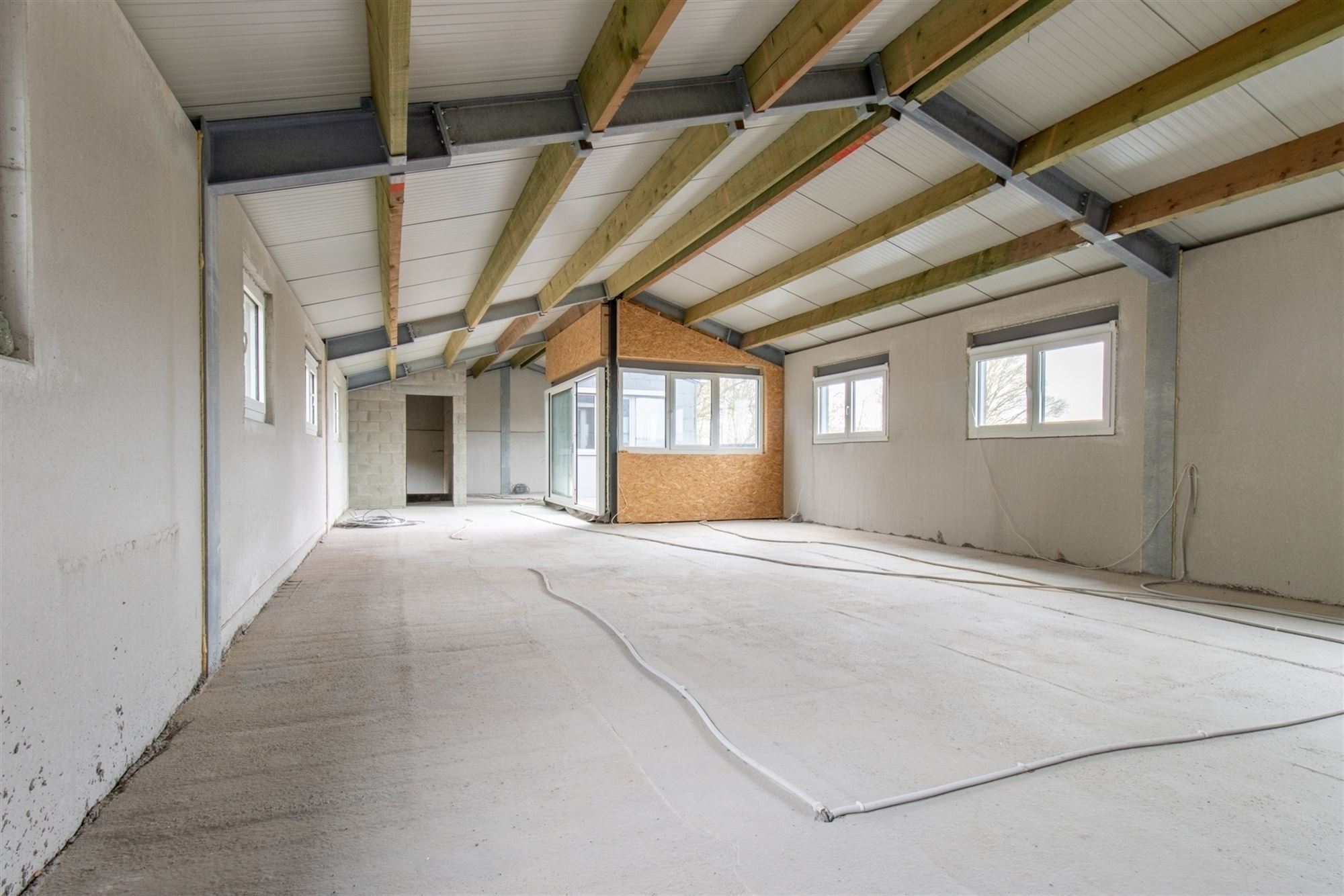 op de verdieping een appartement in gesloten ruwbouw van ca. 118 m², nog af te werken (het sanitair materiaal is beschikbaar, lijst op aanvraag),